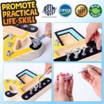 - 🚚【 HIGH-QUALITY TOY WITH NON-TOXIC MATERIAL】Everything included is made up of high quality and with the safest and non-toxic material to make sure your child spends their time longer and much safer. Our screwdriver board is made of safe wood with a curved edge design without any sharp edges. Smooth corners and surfaces make it comfortable to play with tiny hands and ensure safety at maximum.