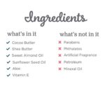 - This creamy and rich lotion contains pure Shea butter, A naturally intense moisturizer for sensitive skin, and vitamins A and E-rich cocoa butter to help reduce the appearance of stretch marks.