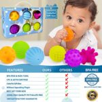 Details: 🎅 🎁 PERFECT GIFT! First Ball Set for Baby, Also a Best First Gift. more ways to play, more skills being developedbolas sensoriales para bebé To develop new skills, babies need to be given the opportunity to practice through play. Our baby textured sensory balls are lots of fun and also help in the development: ♫Use a range of different types and colors of balls ♫Introduce balls into other creative activities–baby stimulation balls ♫Roll balls for your baby to grab and make squeaks ♫Classify colored balls by the same color system ♫Group textured balls by the type of textures ♫Rainbow Bold Sensory Balls SAFELY DESIGNED Textured Sensory Balls Not only enhance visual stimulation, KONIG KIDS takes auditory sense into considering. The baby balls make squeaking sound when squeezed. After years and years of improving production technique, the small parts (the squeaking plugin) will not come out apart when babies playing. But parents’ supervision is always recommended! Safety Balls with Certifications: ✔ASTM F963-17 ✔ CPSIA of 2008 Sec. 108(a) and 108(c), 16 CFR 1307