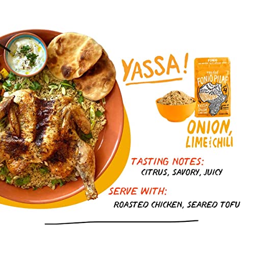 • WEST AFRICAN FLAVOR PILAF: Inspired by Senegal’s most popular dish, Yassa chicken, our yassa onion, lime and chili fonio rice pilaf with a juicy, citrus, savory taste offers the vibrant and comforting flavors of caramelized onions, smoky chili pepper heat, and juicy lime. Serve with roasted chicken, seared tofu or grilled seafood and mango